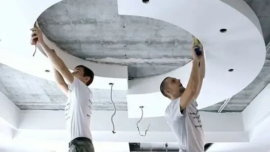 Можно воспользоваться услугами профессиональных монтажников, которые без проблем произведут монтаж натяжного потолка.