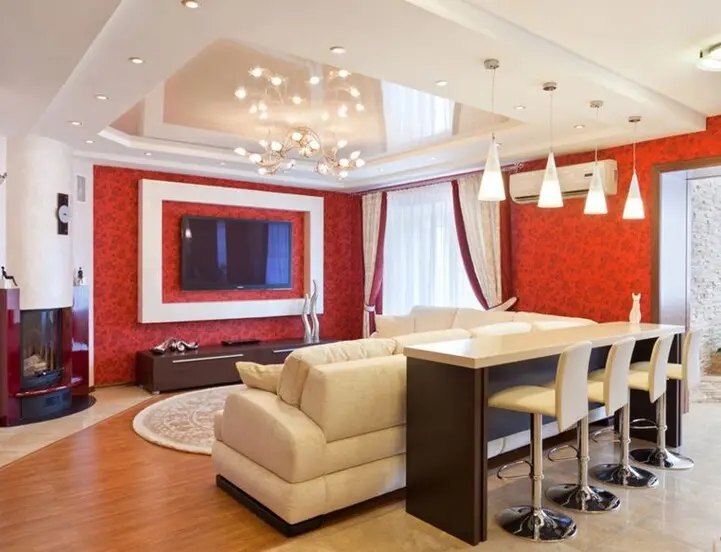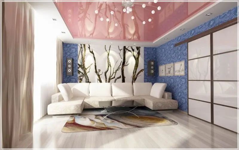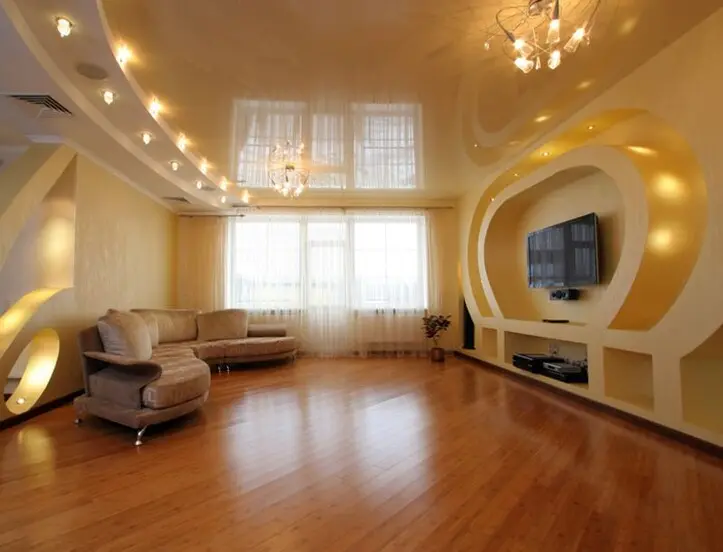 Натяжной потолок в гостиной