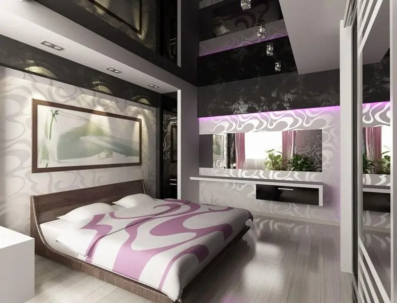 Во-первых, дизайн натяжных потолков чрезвычайно разнообразен для такого помещения как спальня.