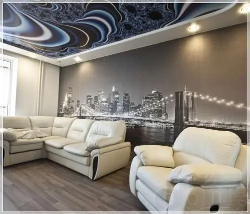 В прогрессивной квартире натяжные потолки становятся идеальным «фоном» для воплощения дизайнерских идей любого стиля. Натяжное полотно может изготавливаться различной величины, фактуры, или цвета, это позволяет легко справляться с выполнением любых дизайнерских решений. Полотна натяжных потолков можно монтировать на различных конструкциях, можно декорировать фотопечатью и рисунками.